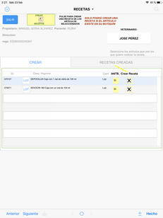 Al realizar la receta directamente desde el albarán con los artículos de su botiquín, no tendra que introducir los medicamentos a mano, ademas también puede modificar o introducir datos a mano es sus recetas como, tiempos de espera, via administración, unidades, diagnostico, etc.